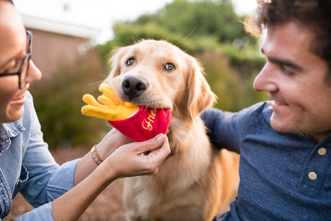 Das American Fries Hundespielzeug von P.L.A.Y. bringt knusprigen Spielspaß in den Hundealltag. Die gewellten Pommes quietschen, knistern und laden zum ausgelassenen Spielen ein. Für noch mehr Beschäftigung lassen sich kleine Leckerlis ganz einfach in den Pommes verstecken – ideal für neugierige und verspielte Vierbeiner. Finally: Pommes, die speziell für Hunde gemacht sind.