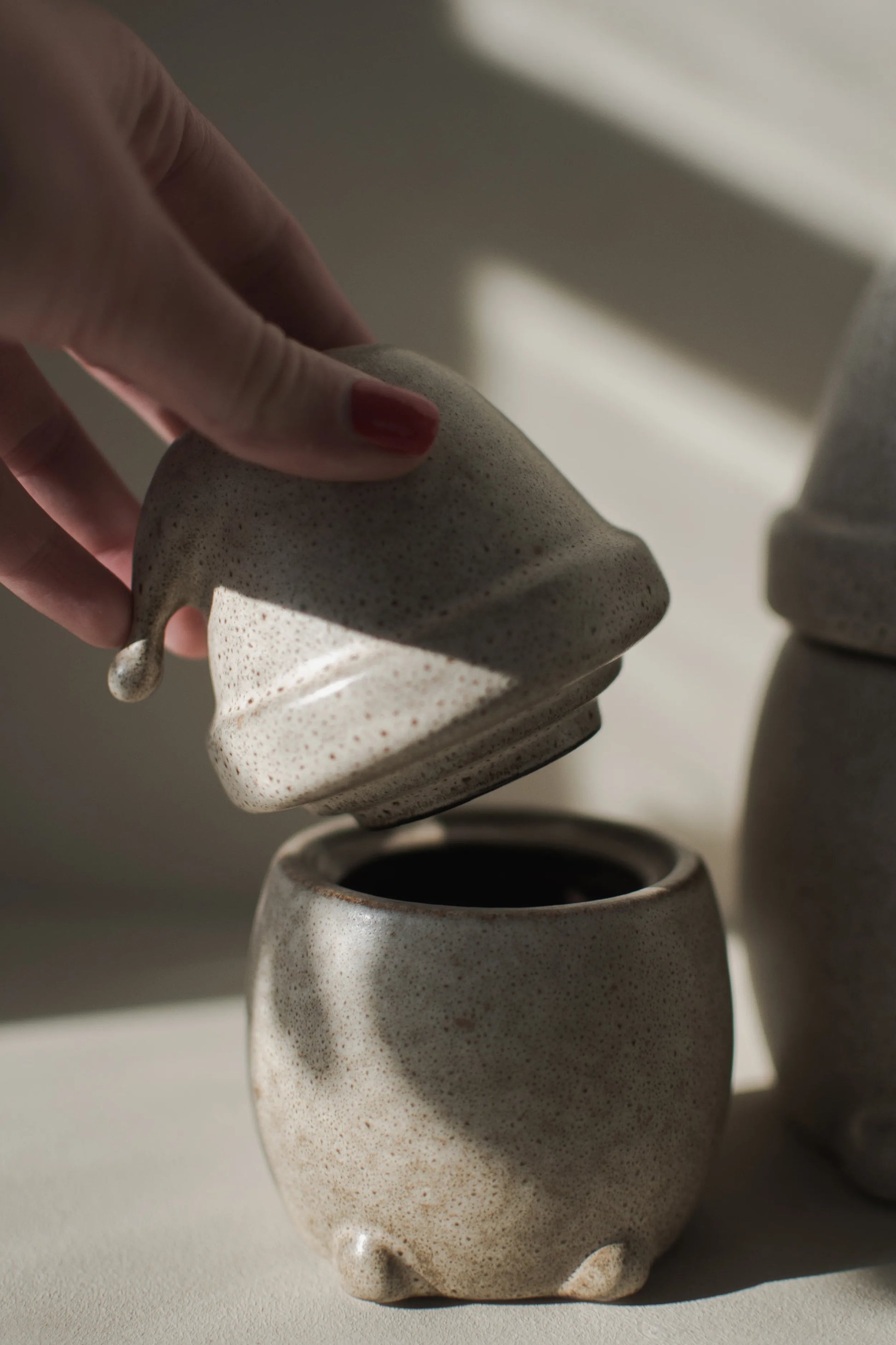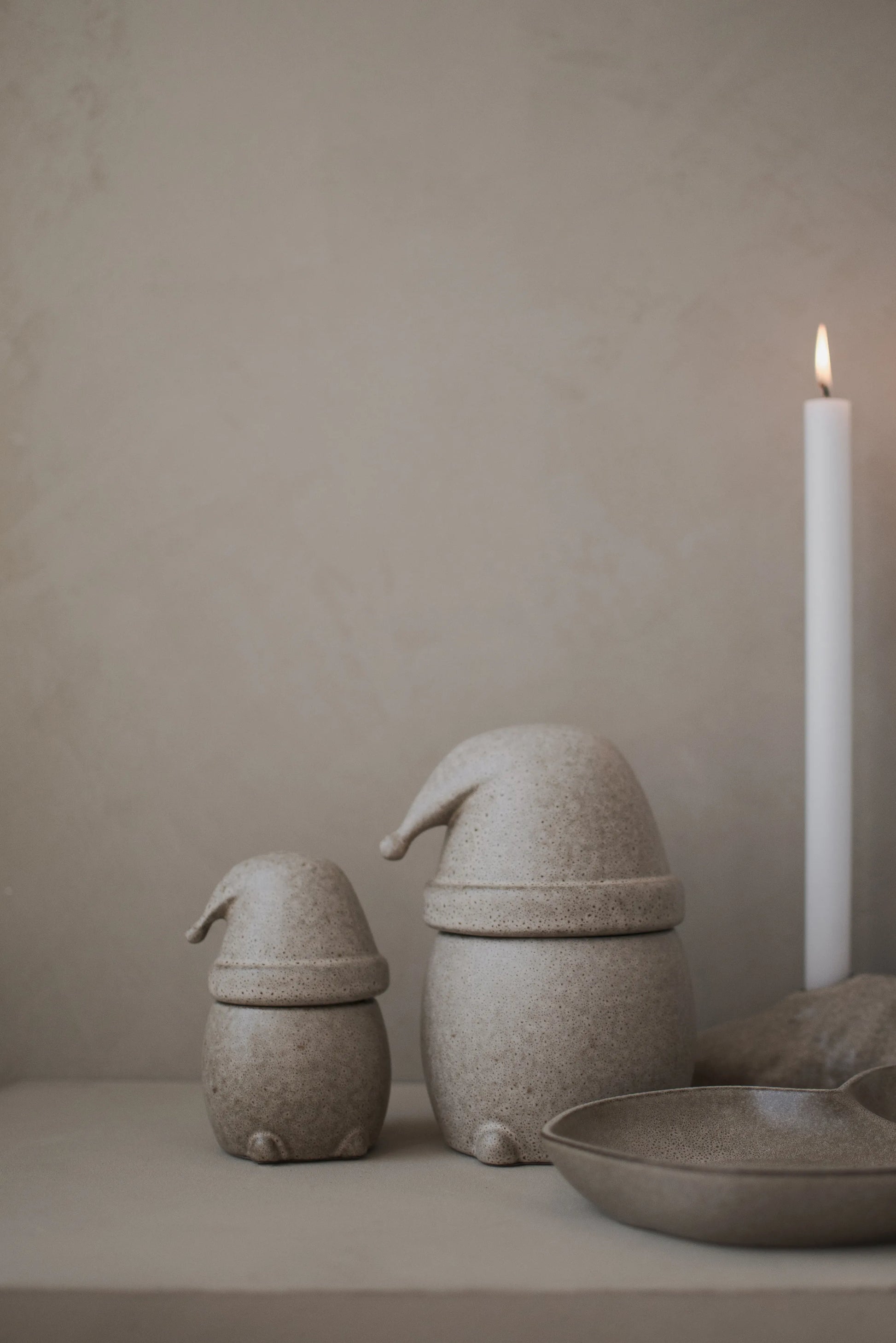 Ob in Large oder Small – in der zweiteiligen Schale lässt sich wunderbar Verstecktes aufbewahren: ein paar Kekse, etwas Süßes oder kleine Dekorationen. Gleichzeitig ist sie ein echter Hingucker auf Tisch, Regal oder Sideboard.