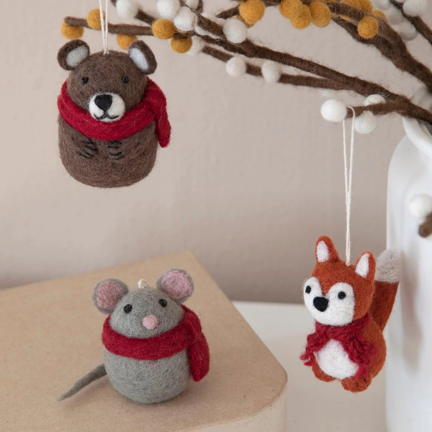 Der Filzanhänger „Bär mit Schal“ von Gry & Sif ist eine liebevolle, handgefertigte Dekoration, die Winterstimmung und Gemütlichkeit in dein Zuhause bringt. Aus hochwertigem Wollfilz gefertigt, besticht der kleine Eisbär durch seine charmanten Details und die weiche, natürliche Haptik.