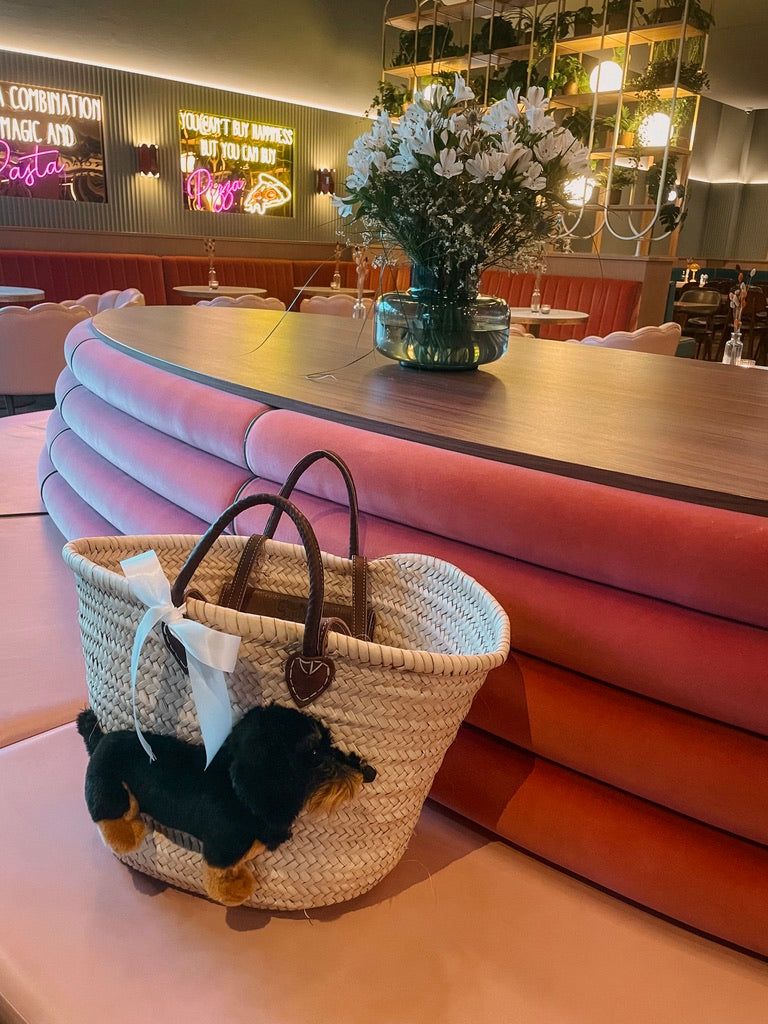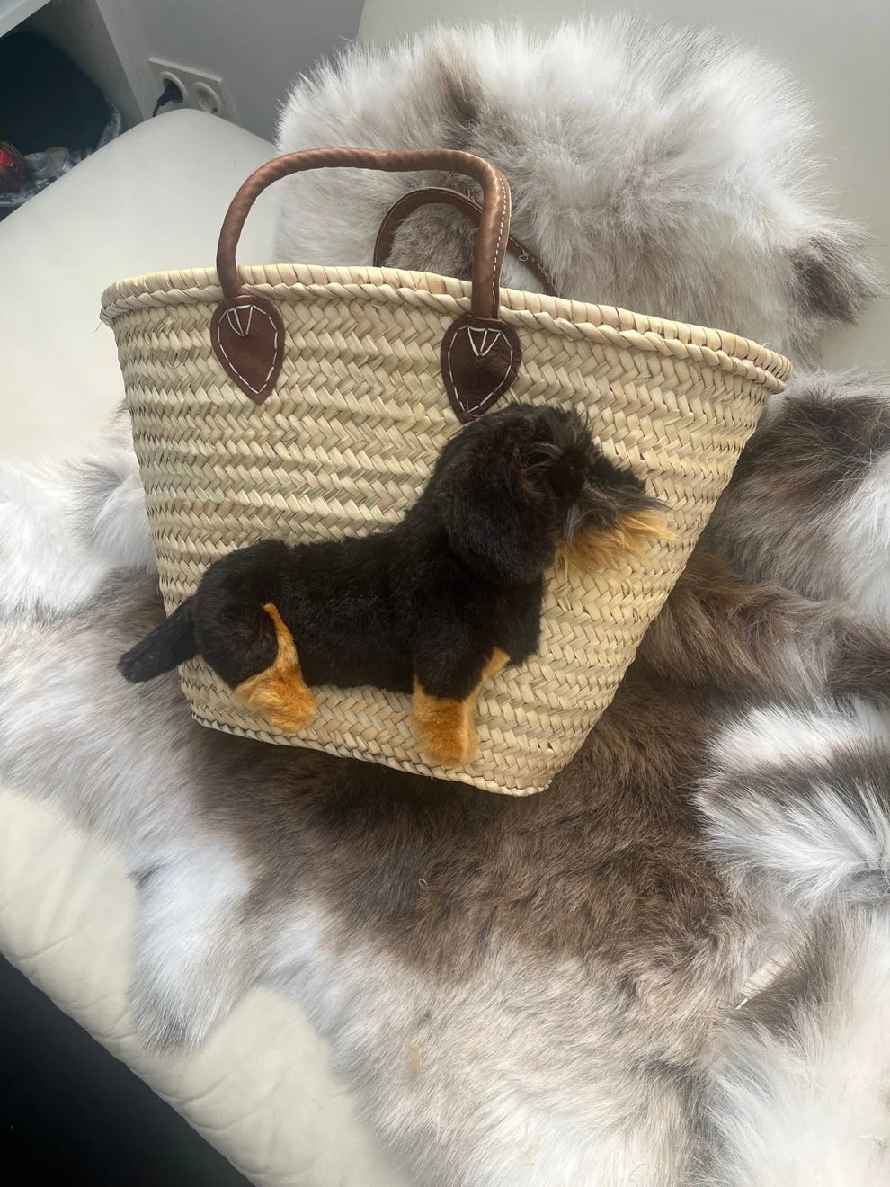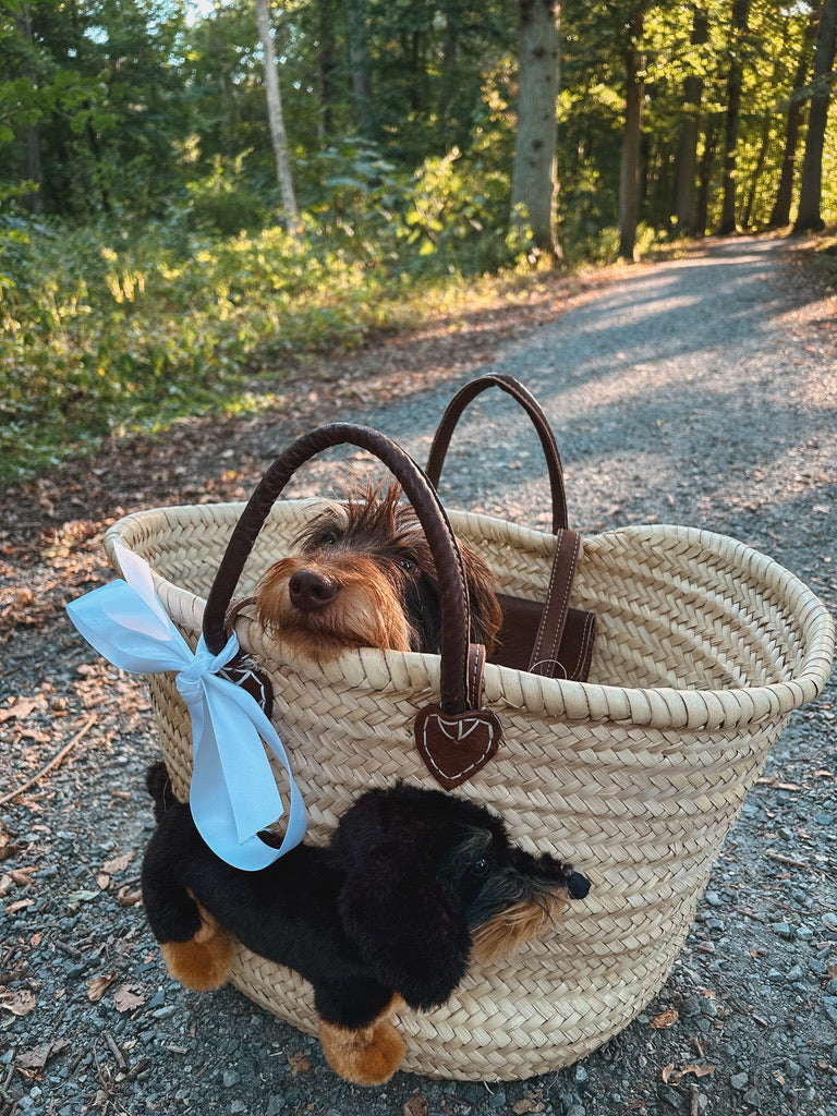 Rauhaardackel Oskar von ZIEGFELD – Handgeflochtene Korbtasche