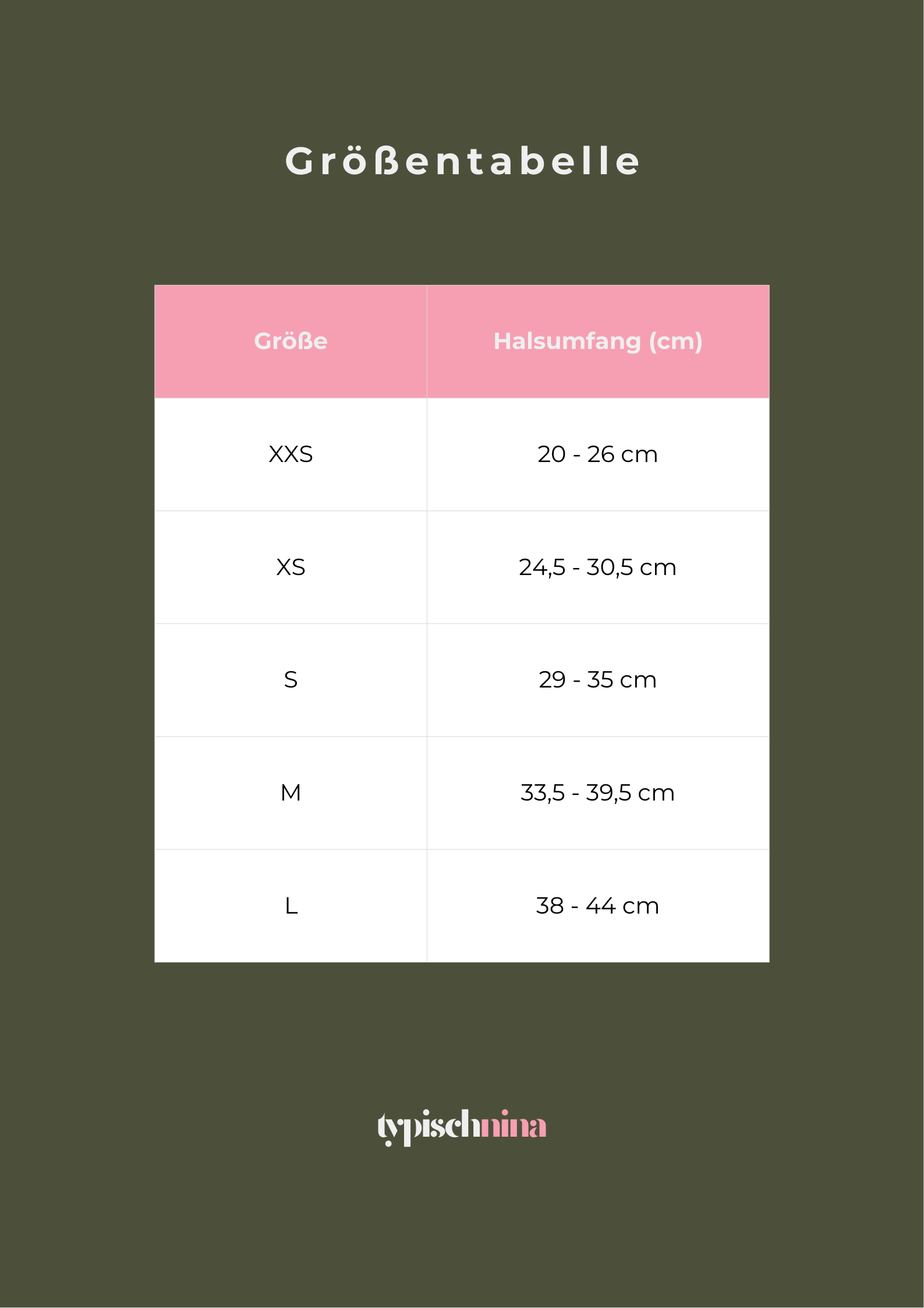 Bitte miss den Halsumfang deines Hundes direkt am Hals und nicht anhand eines vorhandenen Halsbandes.
