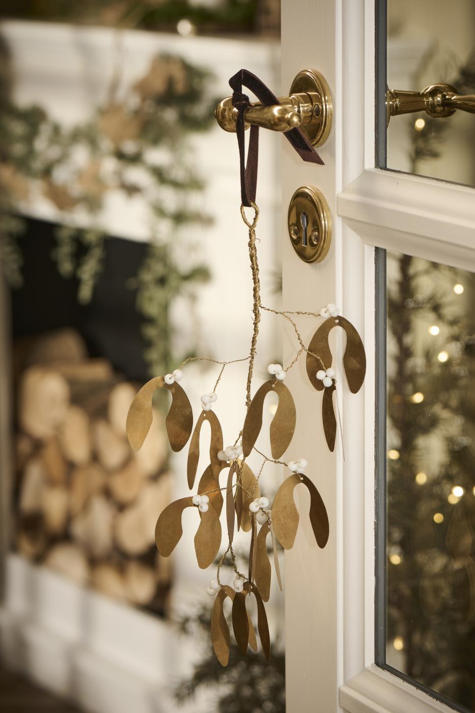 Dieser edle Mistelzweig von Ib Laursen verbindet zarte Romantik mit skandinavischer Schlichtheit. Feine goldene Blätter und weiße Perlen schimmern dezent im Kerzenlicht und verleihen jedem Raum einen Hauch von festlichem Zauber.