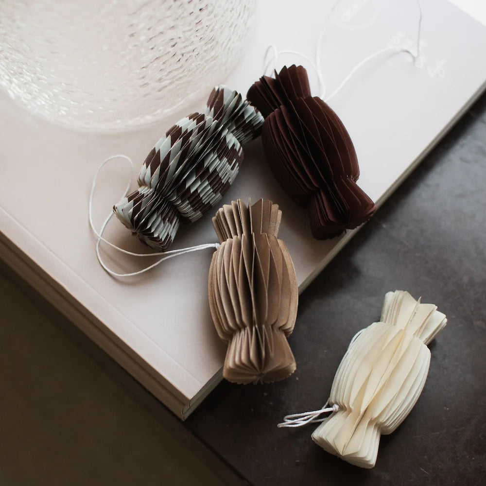 Entworfen von Karin Dahlin Gunterberg als Teil der beliebten Paper-Serie, ergänzen die Candy-Anhänger wunderbar andere Papierornamente von DBKD und verleihen dem Weihnachtsbaum, Zweigen oder Fensterschmuck eine besondere, detailverliebte Note.