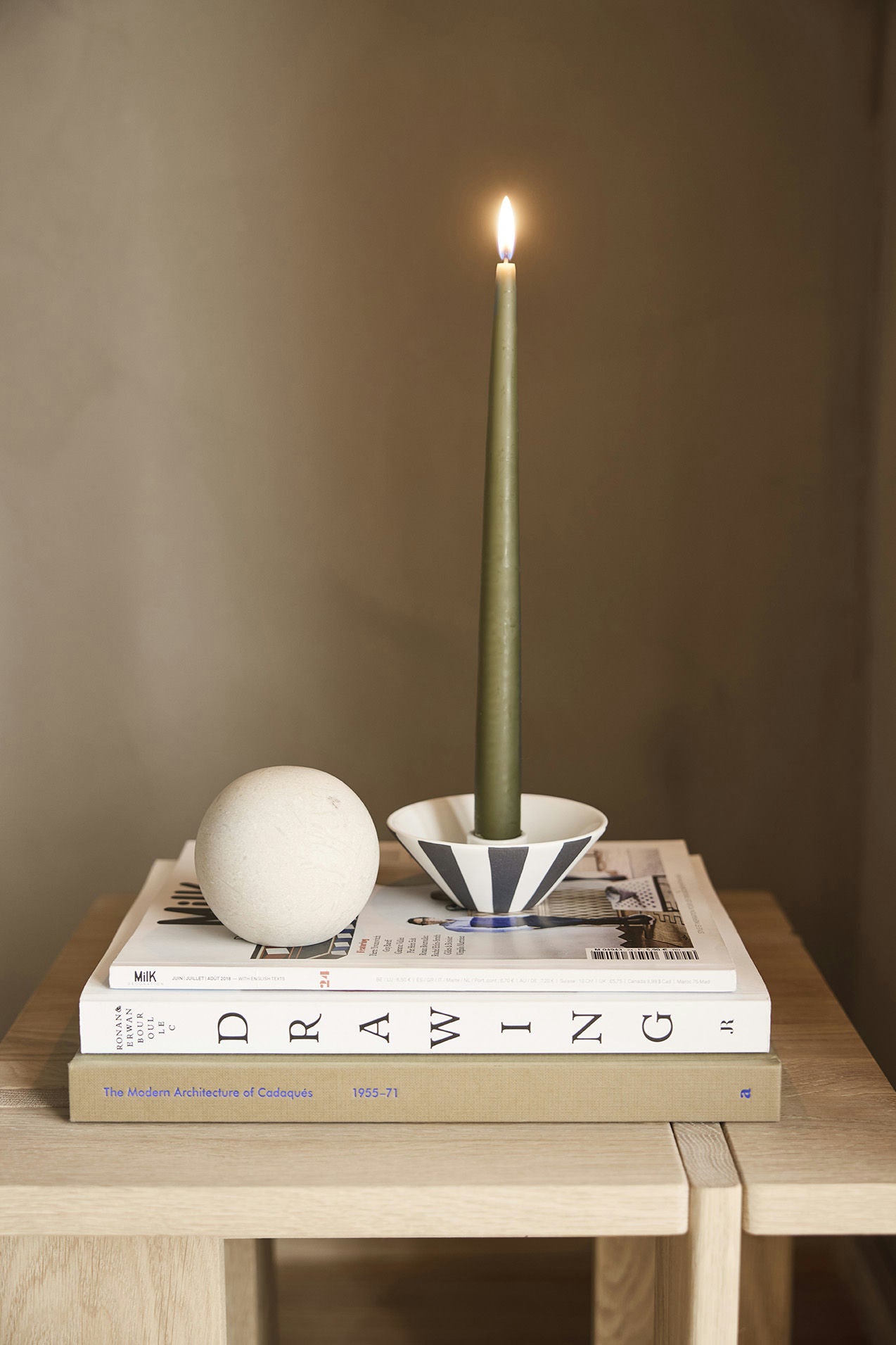 Der Toppu Kerzenhalter von OYOY vereint grafische Eleganz mit moderner Formensprache. Mit seinem charakteristischen Streifenmuster und der skulpturalen Silhouette wird er zum stilvollen Hingucker auf jedem Tisch, Sideboard oder Regal.